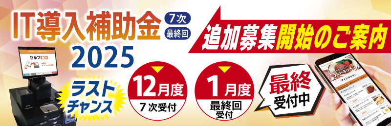 さて、当社セルフレジや、セルフオーダー、モバイルオーダー導入に活用できる「IT導入補助金2025」について、最後の追加公募の発表がございましたので、以下の通りご案内申し上げます。