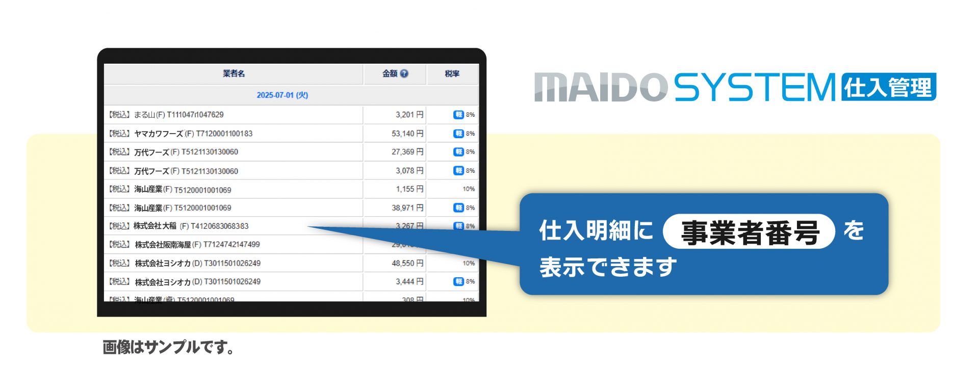 仕入明細に、任意で「事業者番号」を表示できるようになりました。