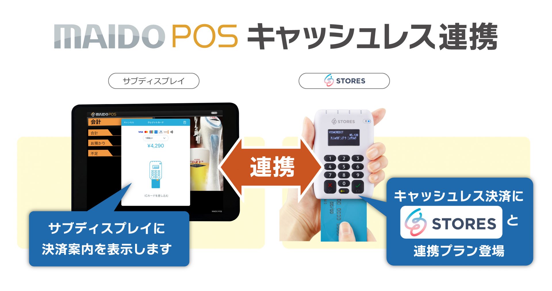 さらに、より手軽に、かつ便利に「MAIDO POS」でキャッシュレス決済を連携利用いただけるよう、キャッシュレス決済大手「STORES」との連携機能を新たに追加いたします。