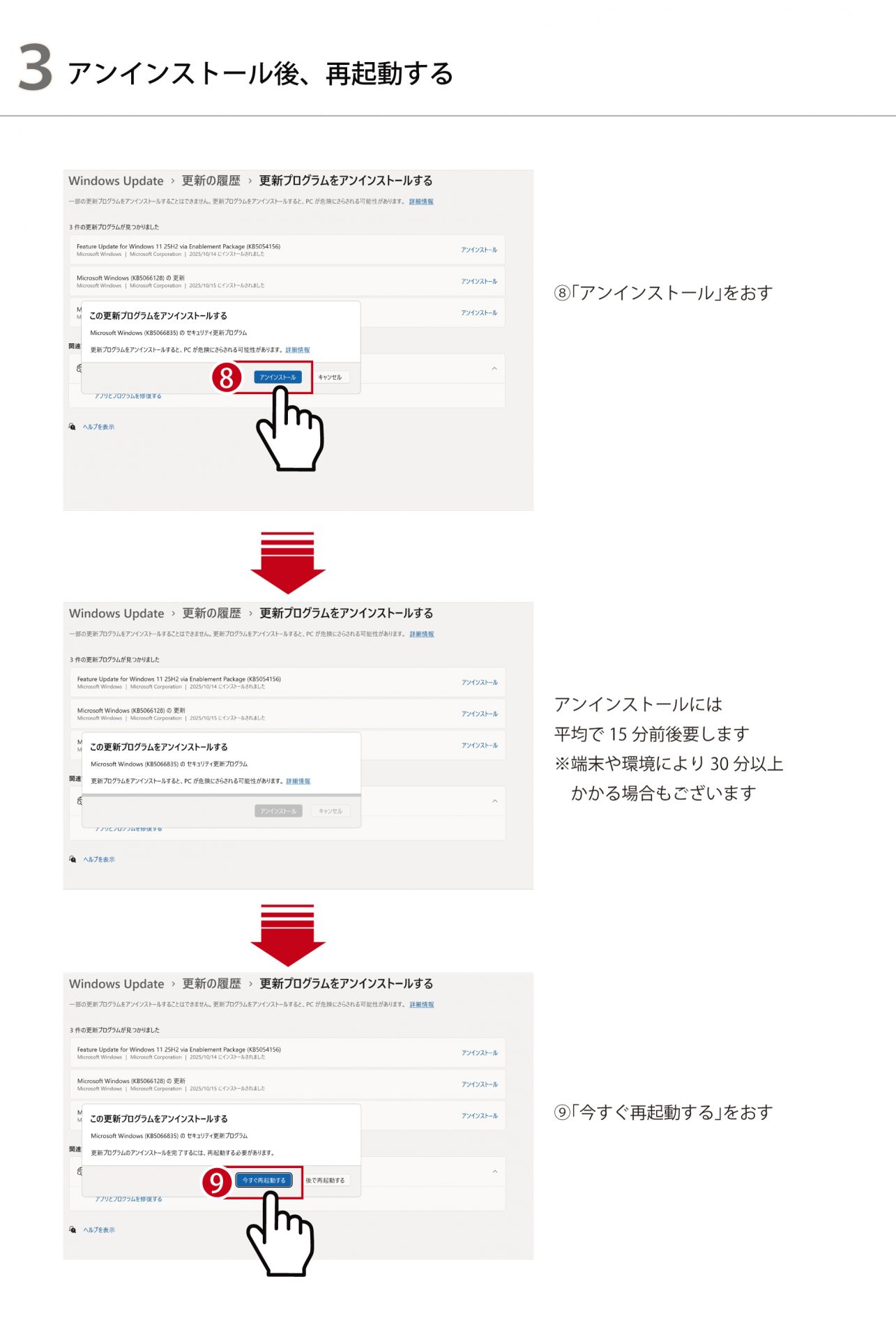 ※上記削除(アンインストール)には、端末や環境により数十分から1時間程度かかる場合もございます。