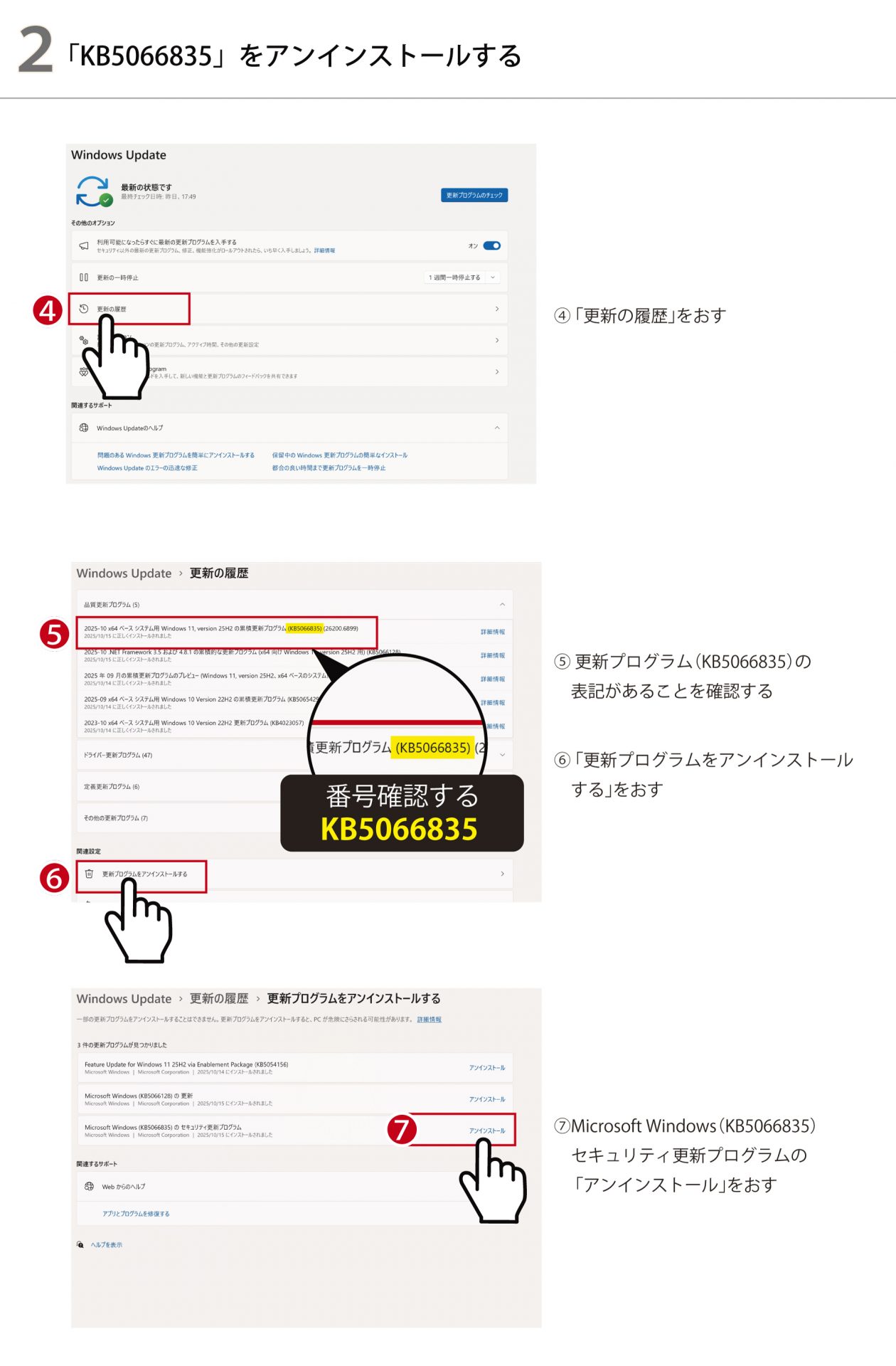 ※上記「㎅5066835」を削除しても再インストールされる可能性がありますので、以下の【2】の対応もあわせて実行してください。